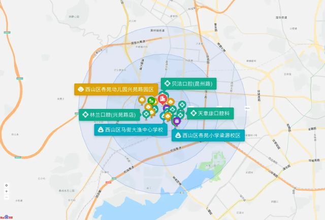 直线3km范围内有79个幼儿园。直线3km范围内有23个小学,如红旗小学(明苑校区)、万科金域国际·春城小学、西山区马街大渔中心学校、西山区春苑小学梁源校区、昆明市第一中学附属小学等。直线3km范围内有20个中学,如昆明第一中学西山学校、云南师范大学附属中学高新校区、昆明市第十四中学高中部、昆明市第十四中学、昆明市第十九中学等。