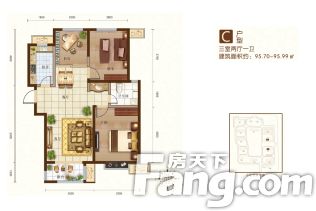 - 3室2厅1卫 在售95.70㎡105.27万元/套