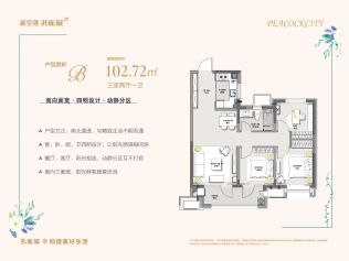 该项目户型设计非常好,主推户型是102.72㎡(3室2厅1卫),82.50㎡(2室2厅1卫)70年产权的房子,使用年限久,投资的话后期升值好出手。