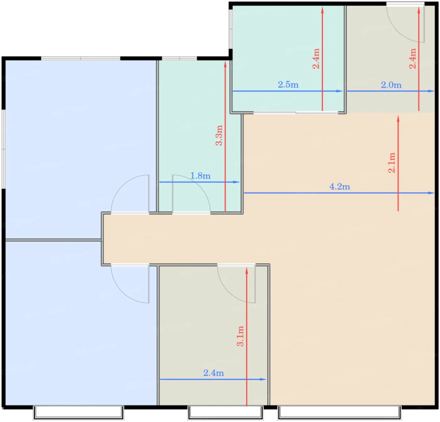 卧室 12.3㎡ | 面宽3.3m | 进深3.9m