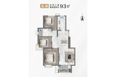 在售C1户型 103㎡三居 | 建面:103㎡ | 朝向:南北