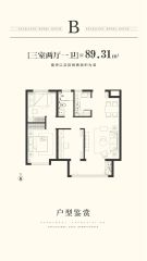 主力户型是79.83㎡(2室2厅1卫),89.31㎡(3室2厅1卫)。规划绿化挺高的,这样空气、湿度都会好一点,比较满意这一点