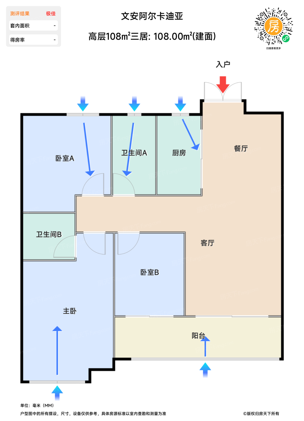 在售高层108㎡三居 | 建面:108㎡ | 朝向:南北