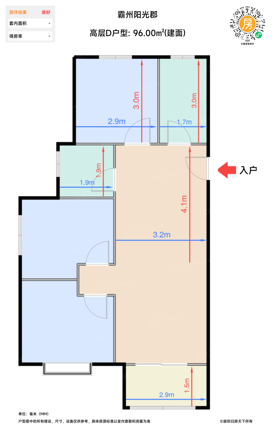 | 卧室 | 8.7 | 2.9 | 3 | 良好 |