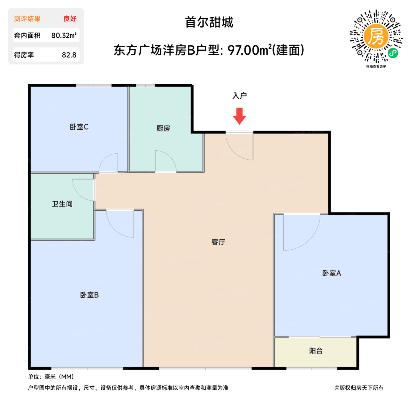 在售东方广场洋房B户型 | 建面:97㎡ | 朝向: