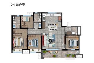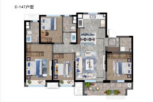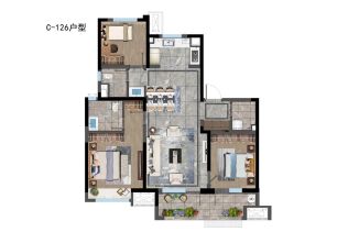 主推户型是 126.00㎡(3室2厅1卫),138.00㎡(3室2厅1卫)视野开阔,一大早的阳光撒进来让人在满能量下醒过来一天的好心情