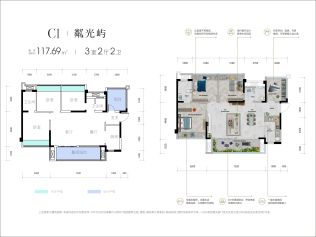 - 3室2厅2卫 在售117.69㎡109.45万元/套