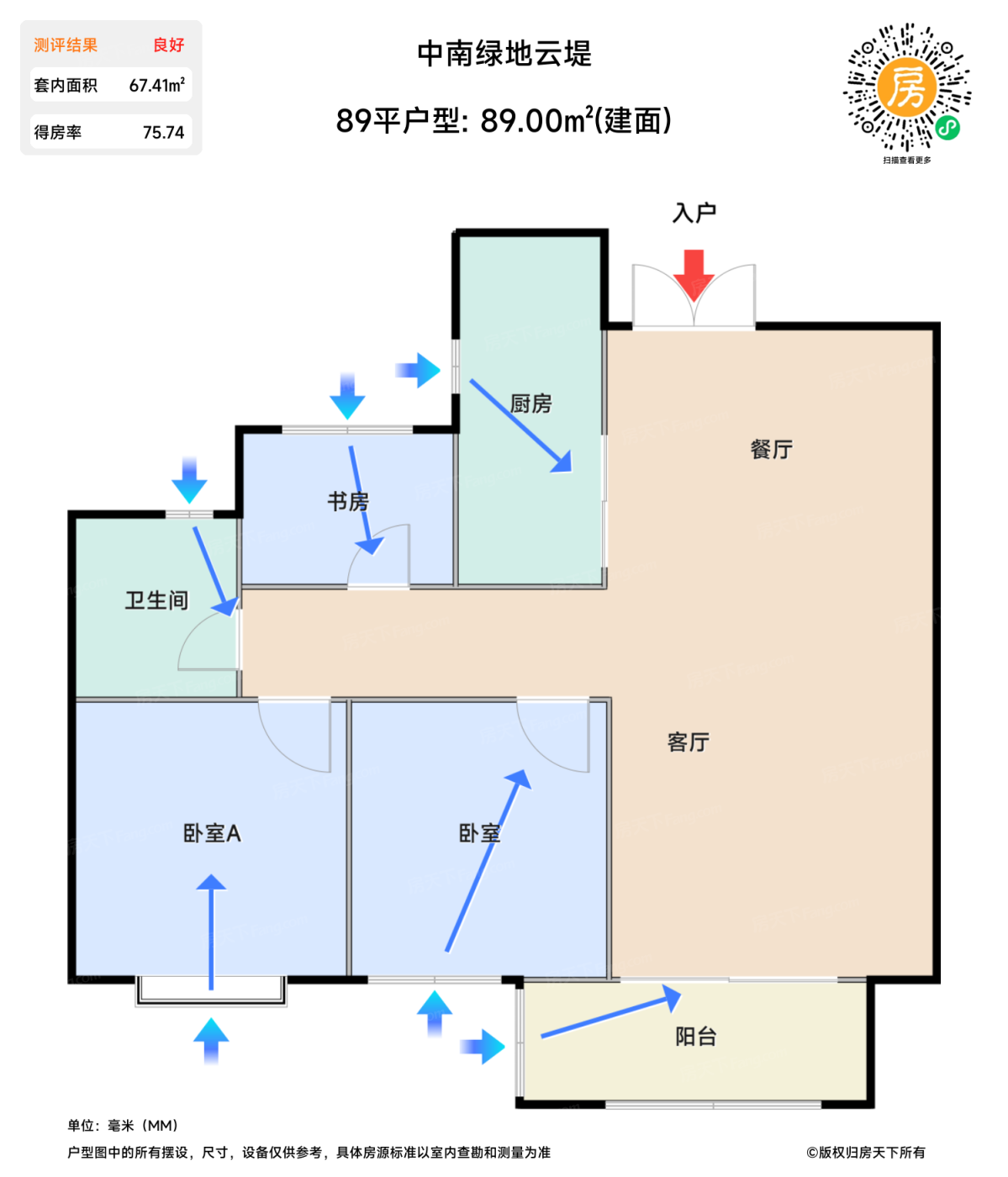 在售89平户型 | 建面:89㎡ | 朝向: