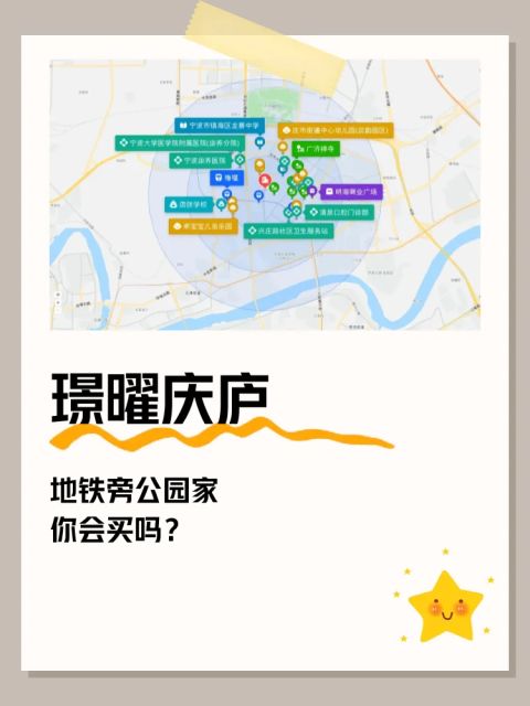 直线3km范围内有26个幼儿园。直线3km范围内有8个小学,如宁波市江北区第二实验小学、镇海区实验小学、唐弢学校、宁波市镇海区鲲池小学、中国科学院大学宁波材料学院附属小学等。直线3km范围内有5个中学:宁波市镇海区龙赛中学、宁波市孔浦中学、镇海区庄市学校、宁波市镇海蛟川书院、中兴中学。