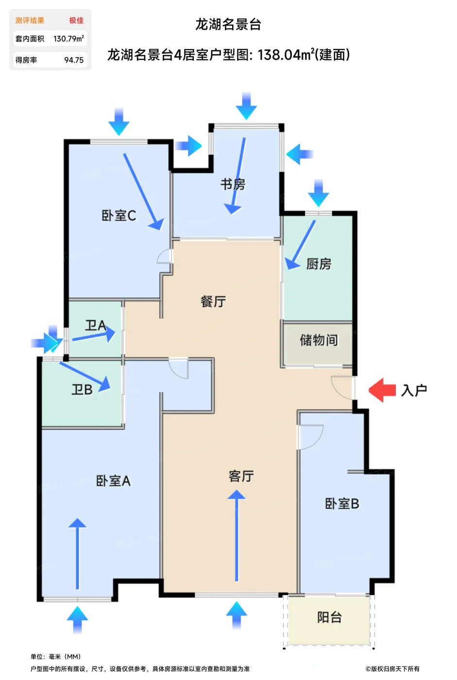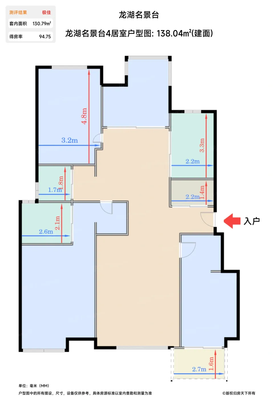 | 卧室C | 14.7 | 3.2 | 4.8 | 优秀 |