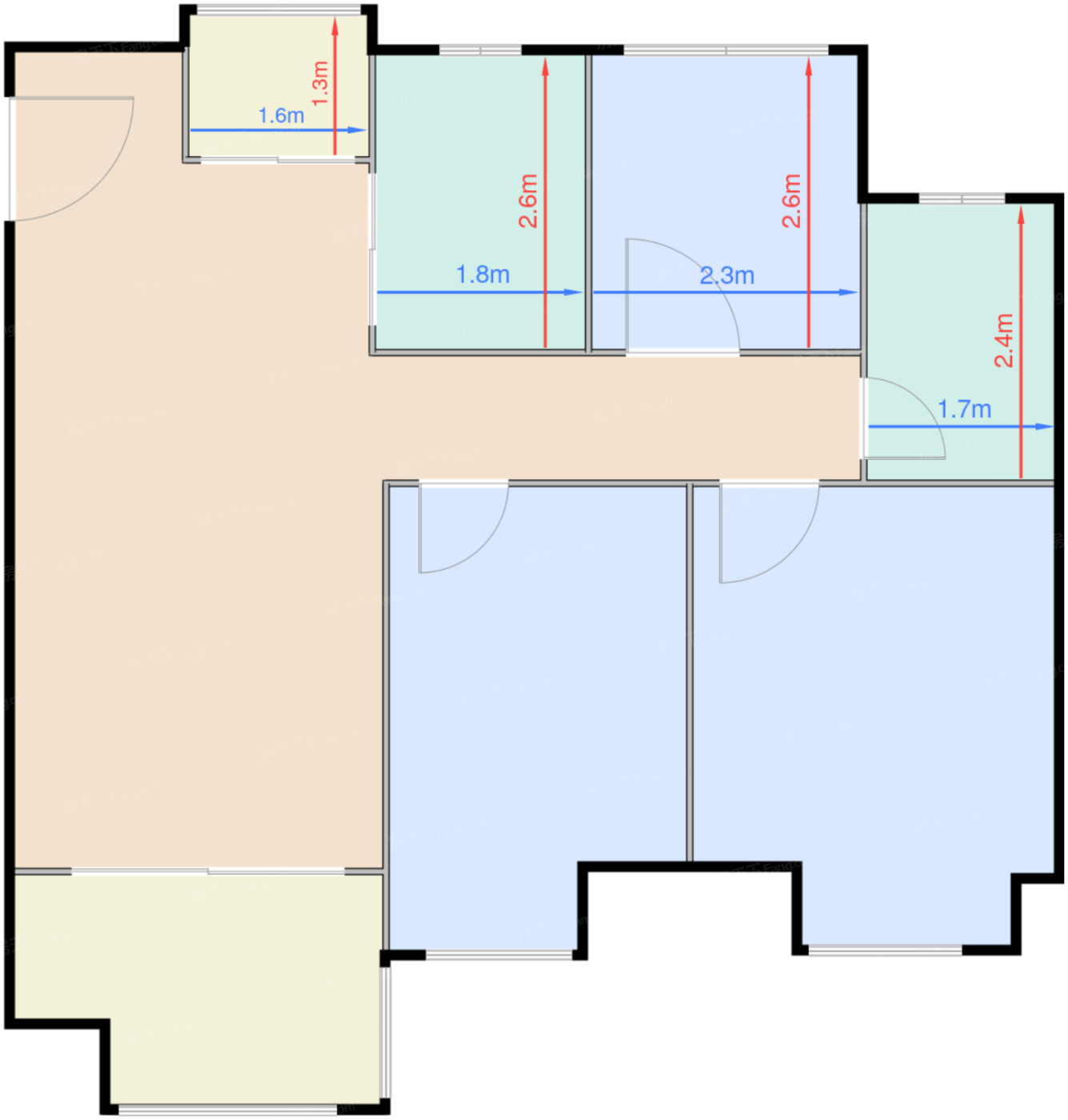 | 卧室A | 6.4 | 2.3 | 2.6 | 良好 |
