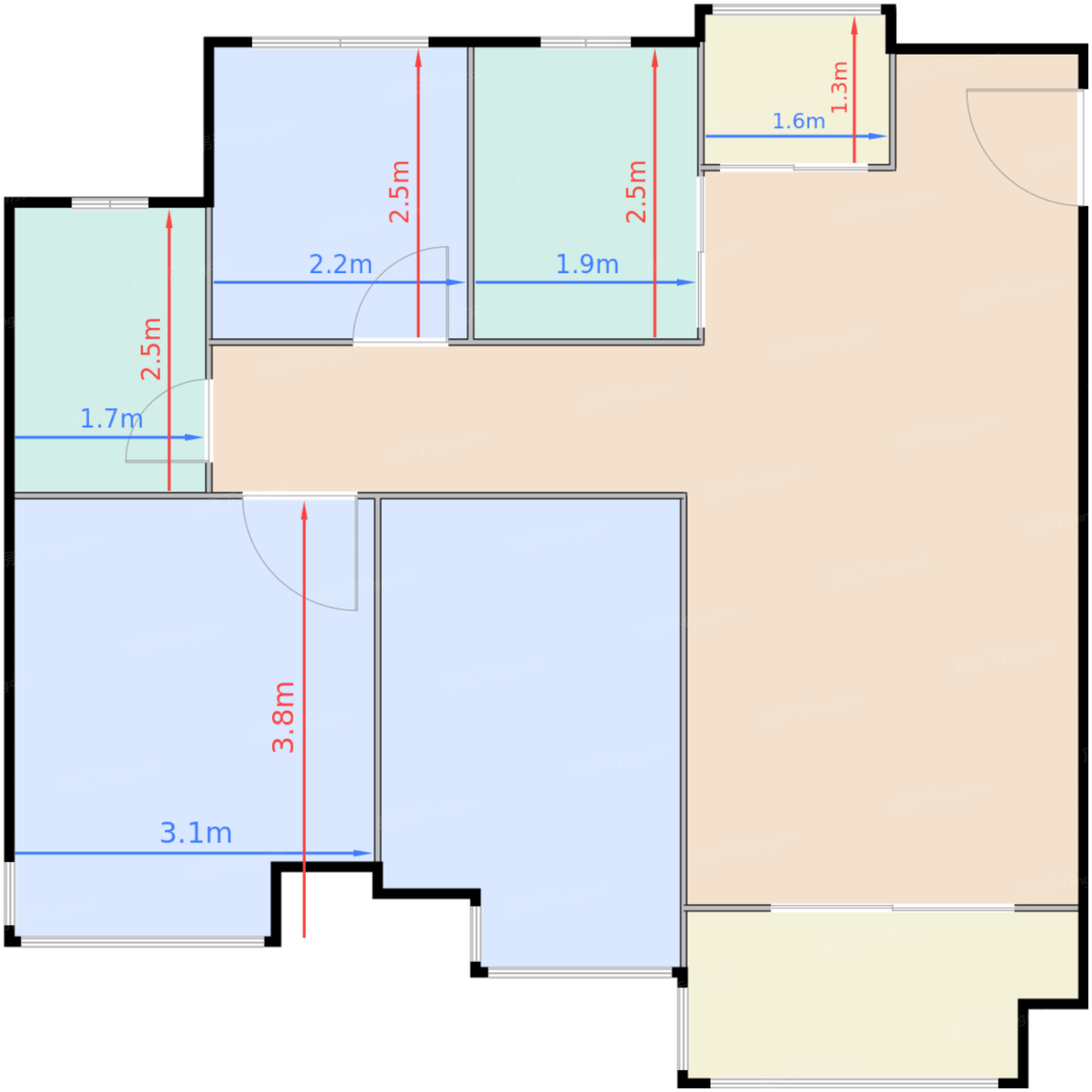 | 卧室B | 11.6 | 3.1 | 3.8 | 良好 |