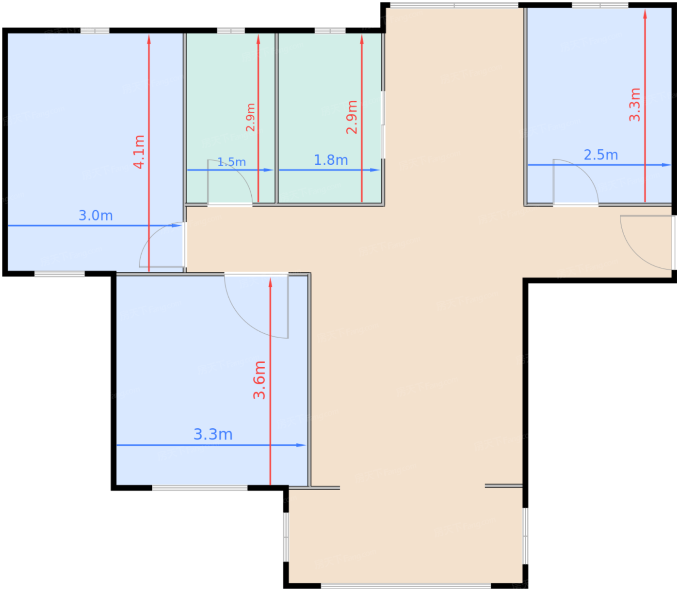 | 卧室B | 11.6 | 3.3 | 3.6 | 良好 |