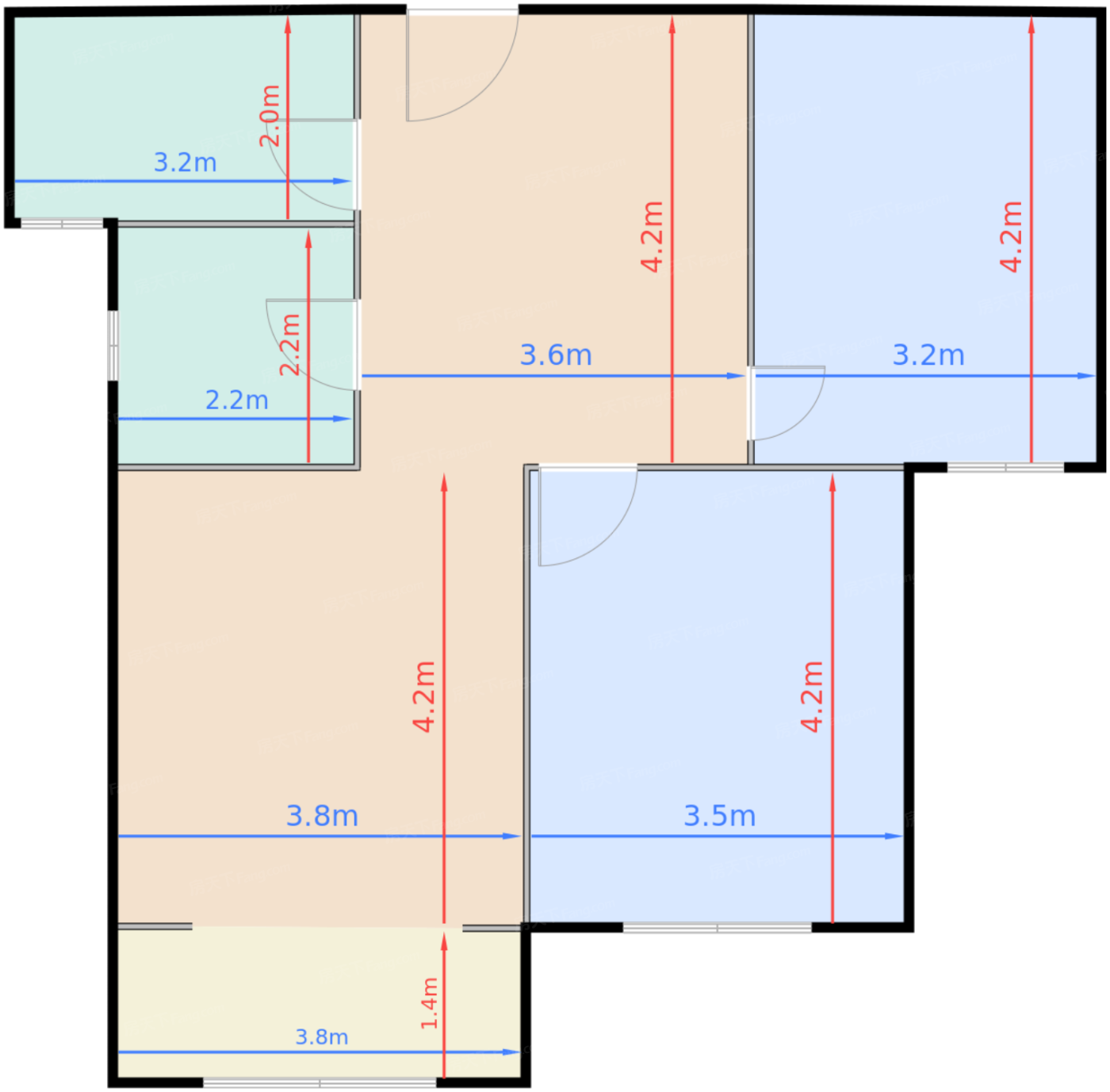 客厅 15.6㎡ | 面宽3.8m | 进深4.2m