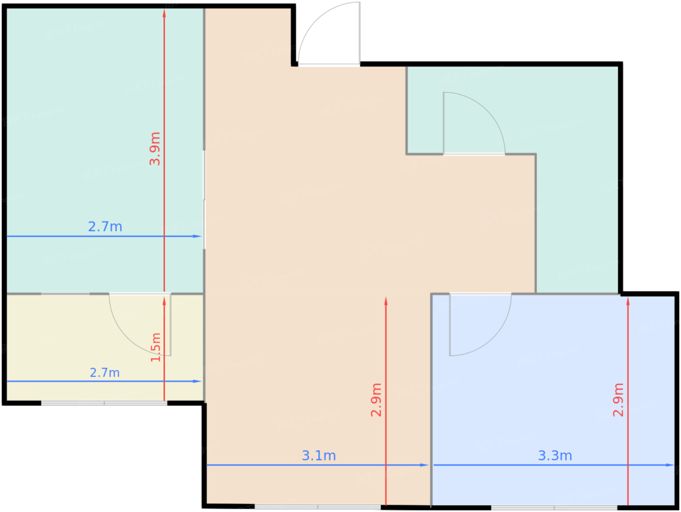 卧室 9.7㎡ | 面宽3.3m | 进深2.9m