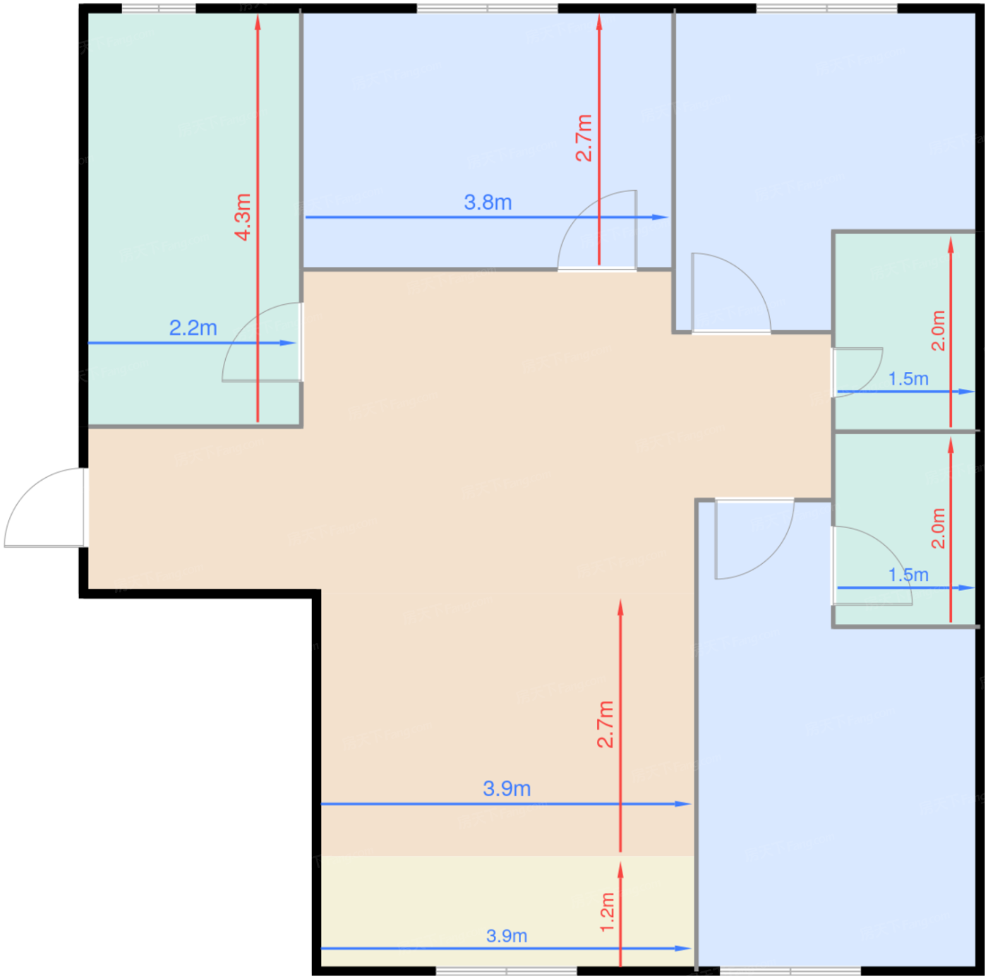 客厅 10.5㎡ | 面宽3.9m | 进深2.7m