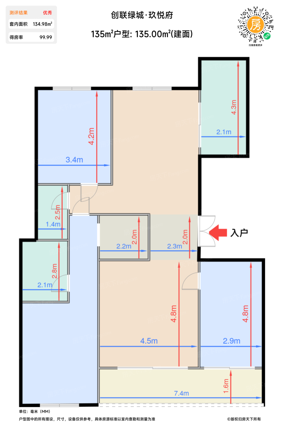 | 卧室A | 13.8 | 2.9 | 4.8 | 良好 |