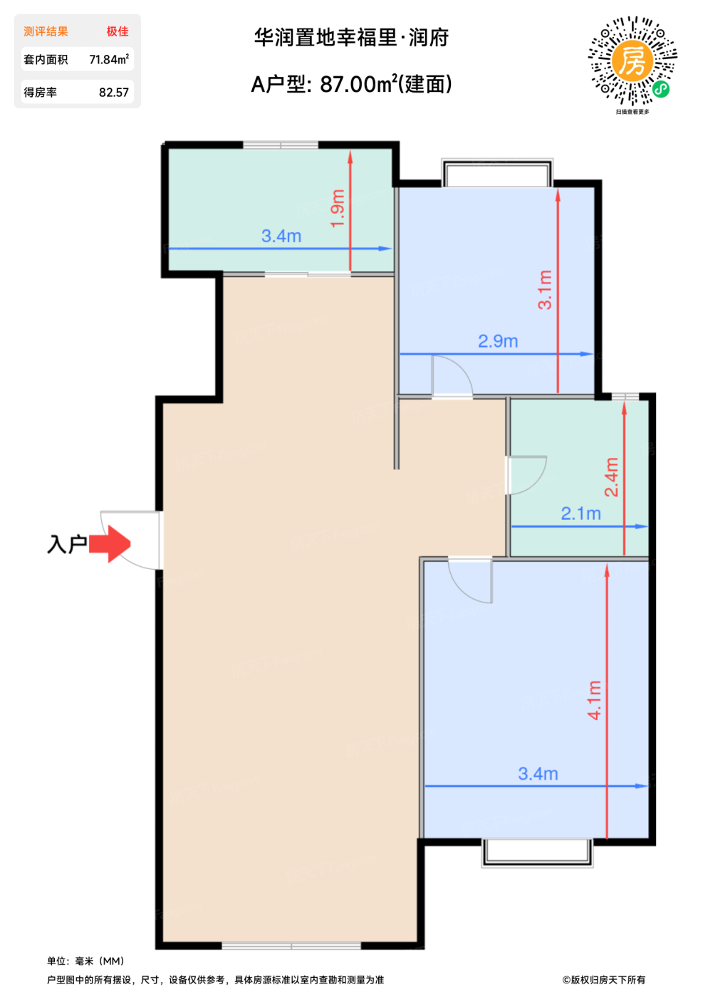 | 卧室A | 13.8 | 3.4 | 4.1 | 良好 |
