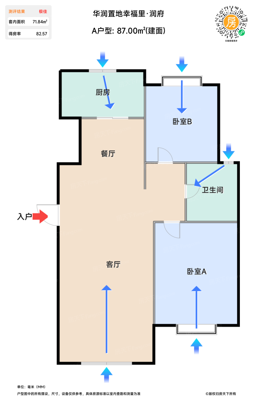 售完A户型 | 建面:87㎡ | 朝向: