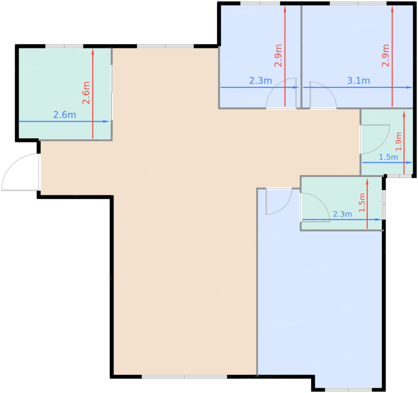 | 卧室C | 6.6 | 2.3 | 2.9 | 良好 |