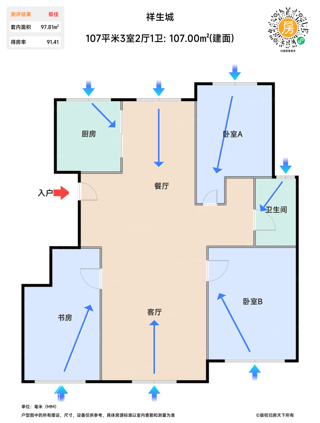在售107平米3室2厅1卫 | 建面:107㎡ | 朝向: