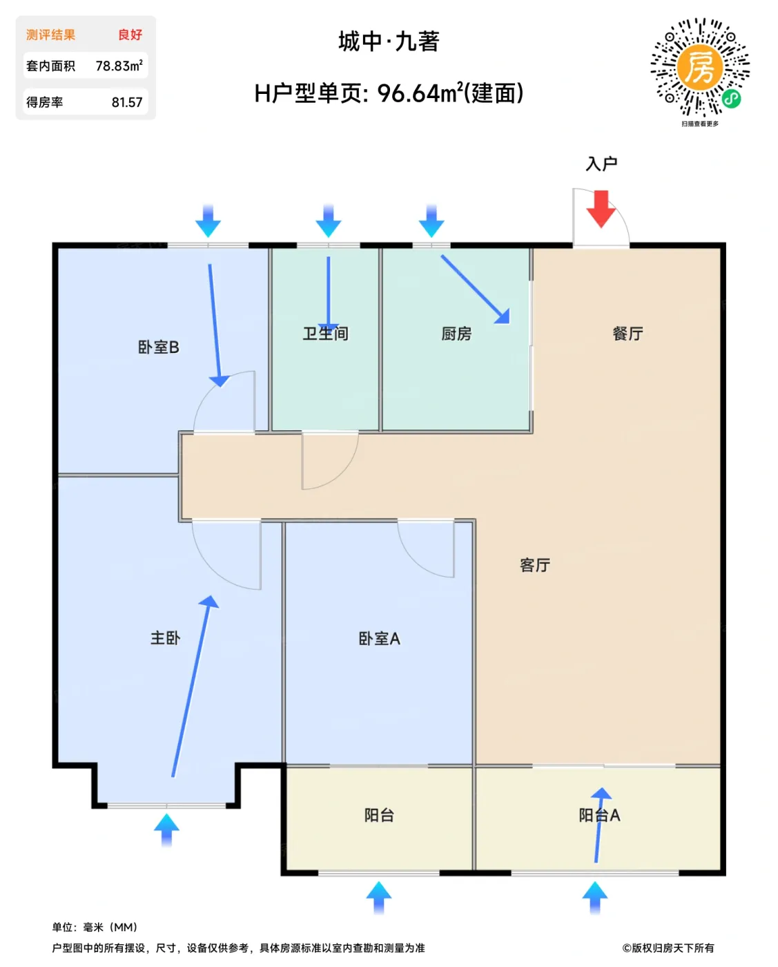 待售H户型单页 | 建面:96.64㎡ | 朝向: