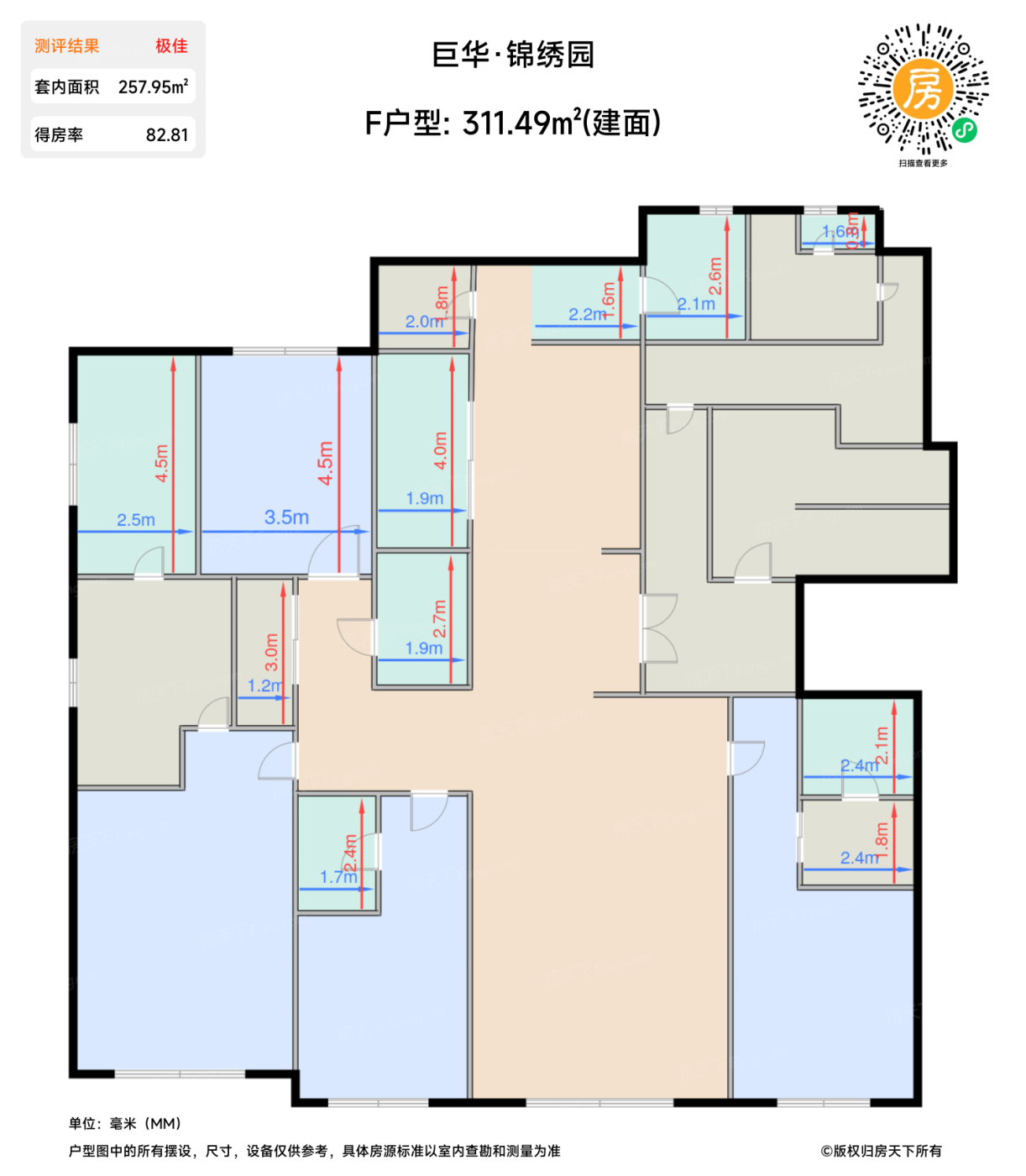 在售F户型 | 建面:311.49㎡ | 朝向: