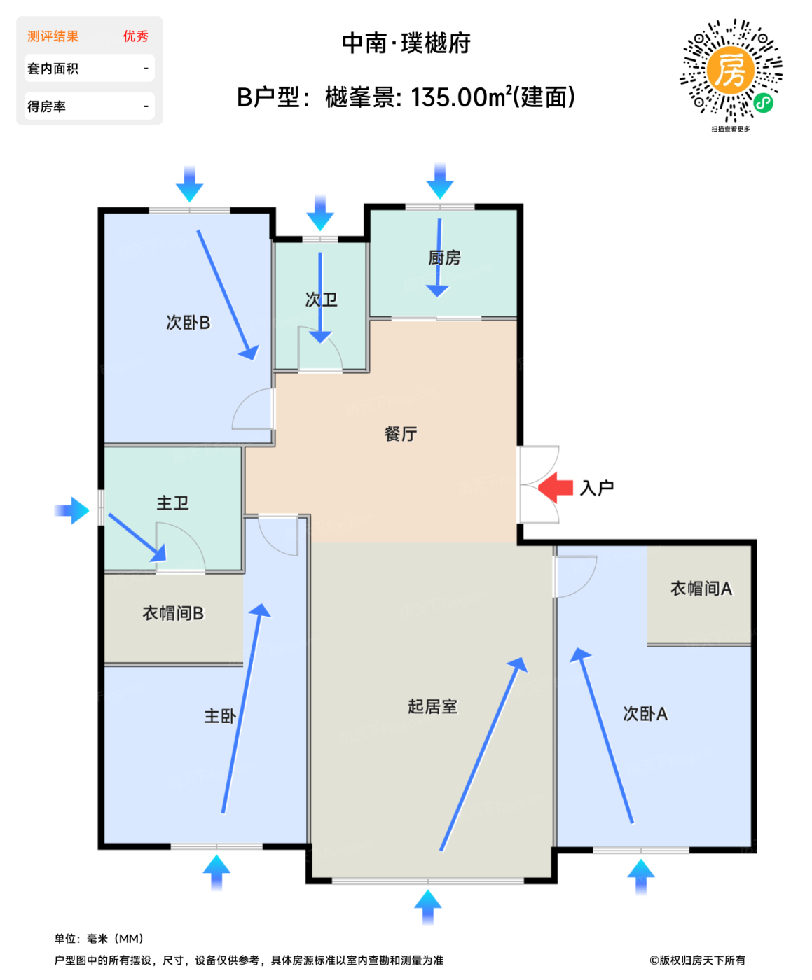 待售B户型:樾峯景 | 建面:135㎡ | 朝向:南