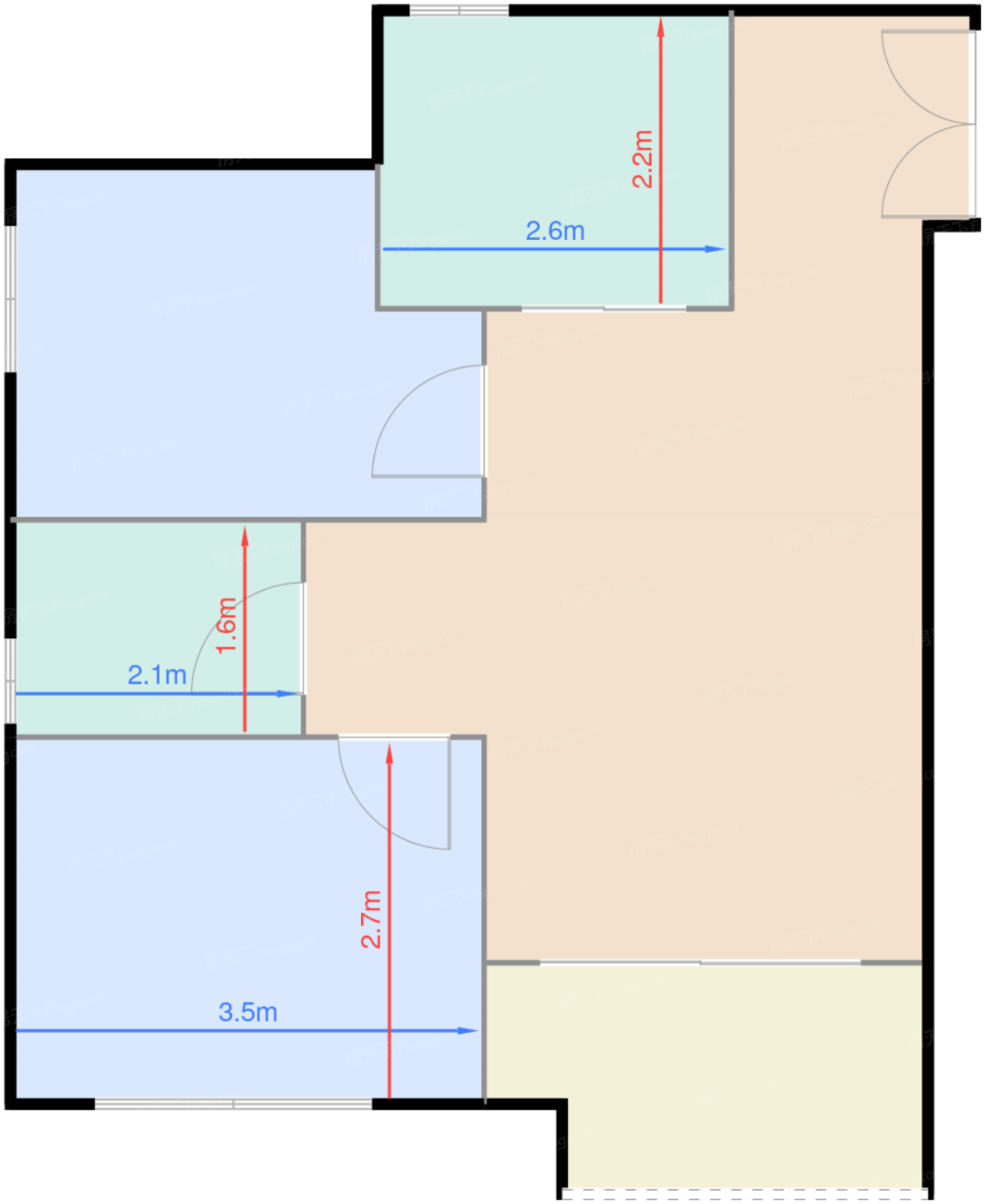 卧室B 8.2㎡ | 面宽3.5m | 进深2.6m