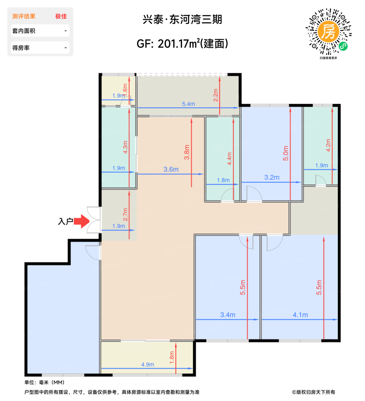 | 主卧 | 22.6 | 4.1 | 5.5 | 极佳 |