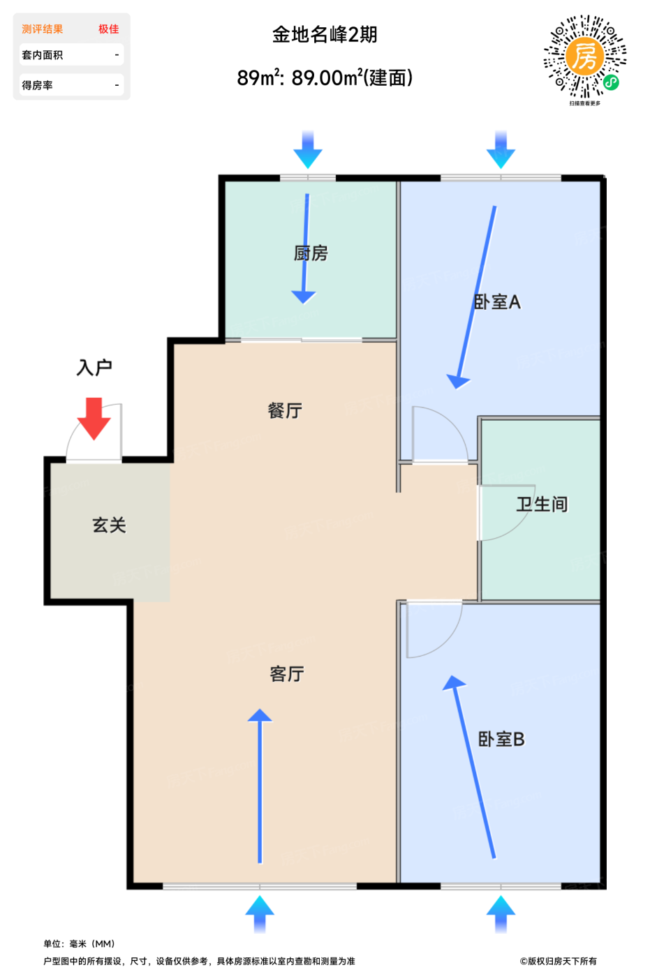 待售89㎡ | 建面:89-89.5㎡ | 朝向: