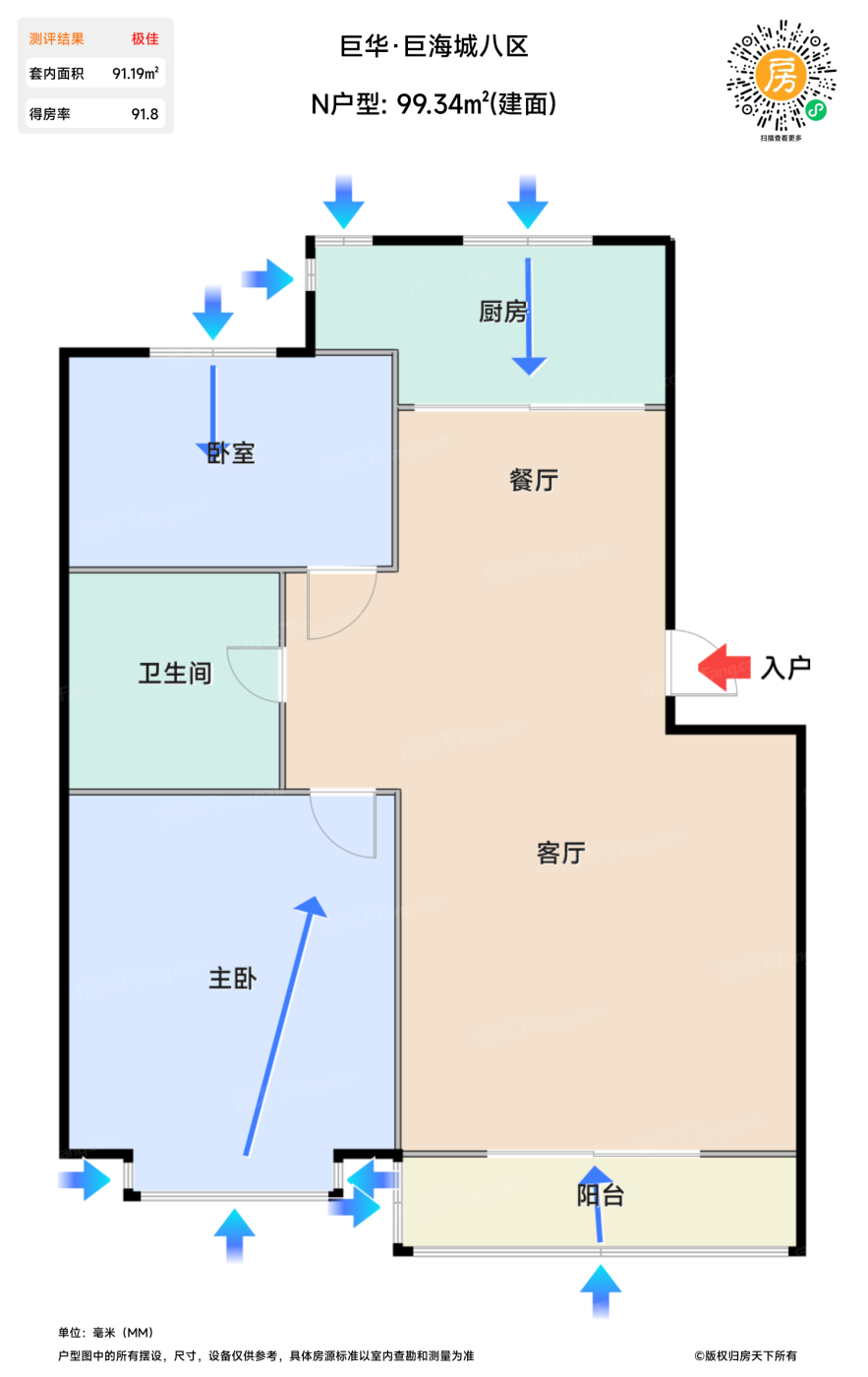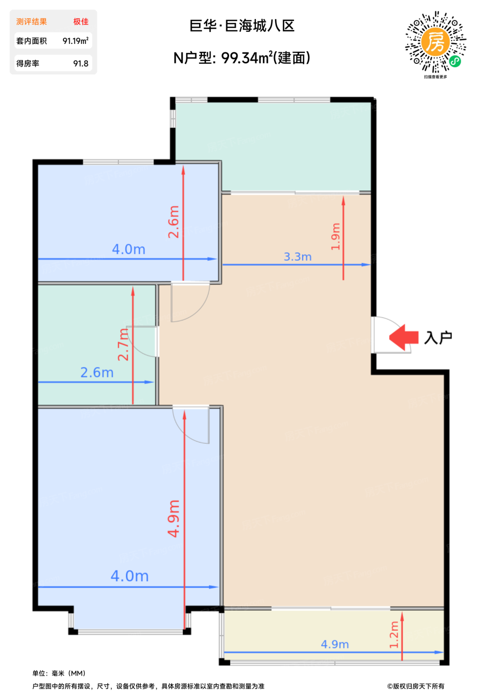 | 主卧 | 18.8 | 4 | 4.9 | 极佳 |