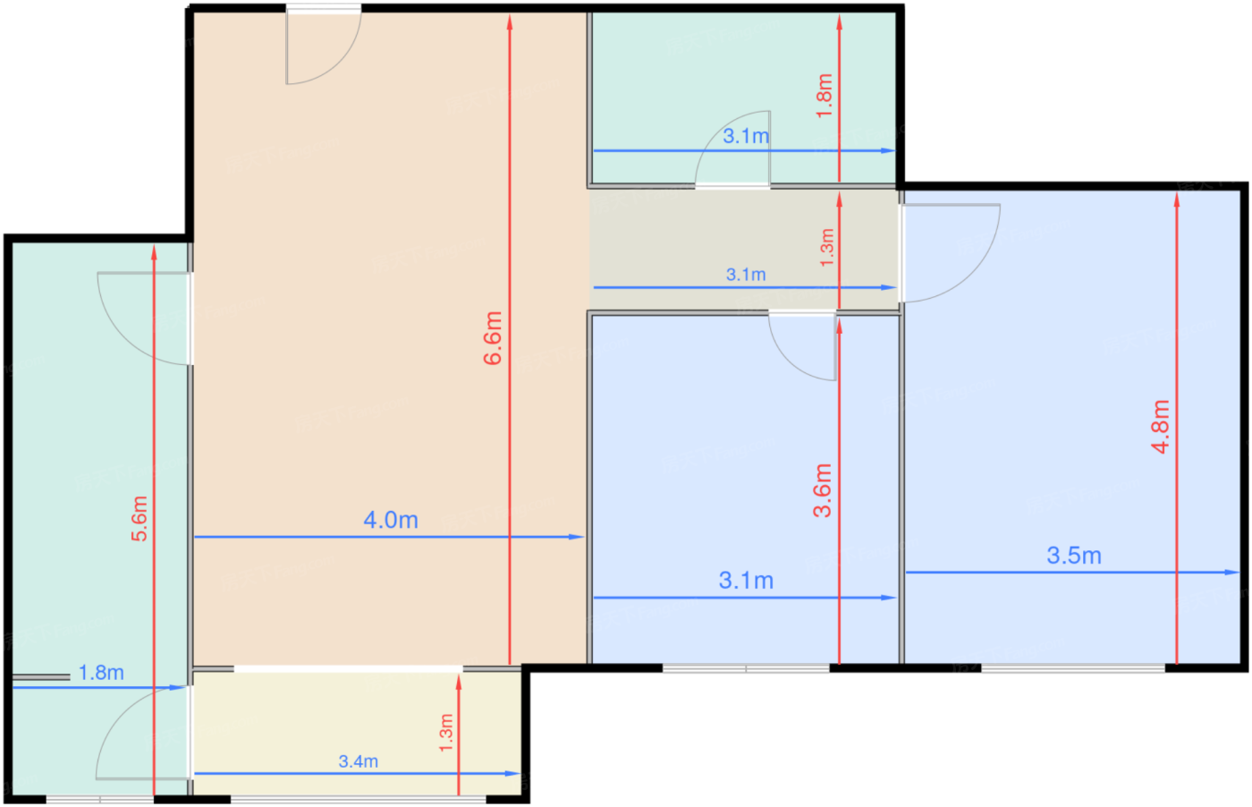 | 卧室B | 13.6 | 3.5 | 4.9 | 极佳 |