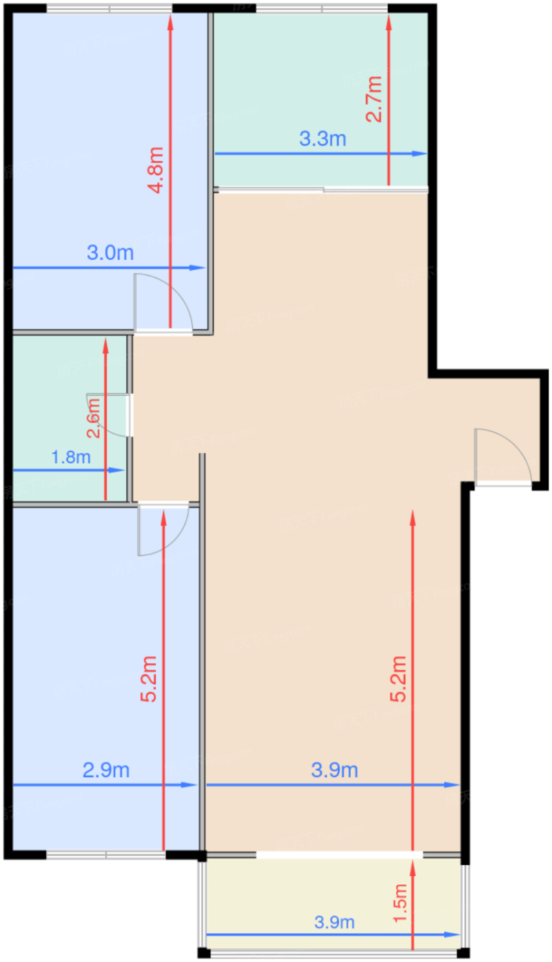 客厅 23㎡ | 面宽3.9m | 进深5.2m