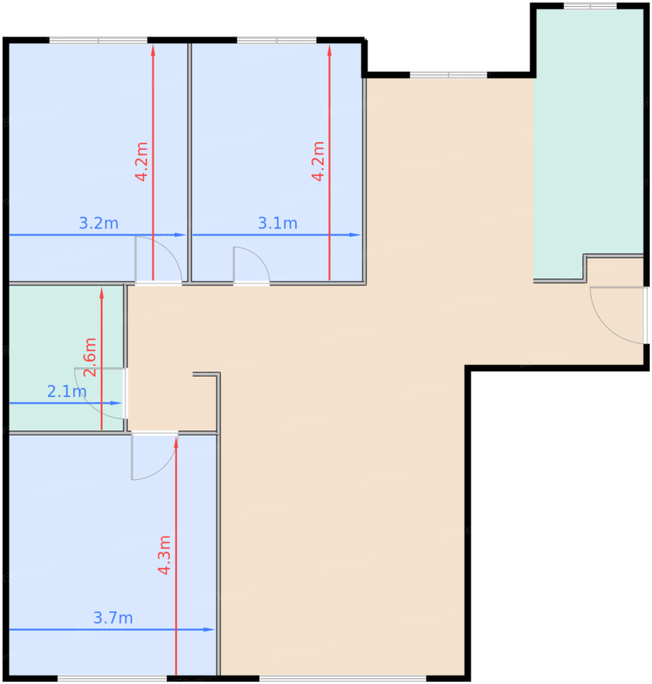 卧室C 11.6㎡ | 面宽3.1m | 进深4.3m