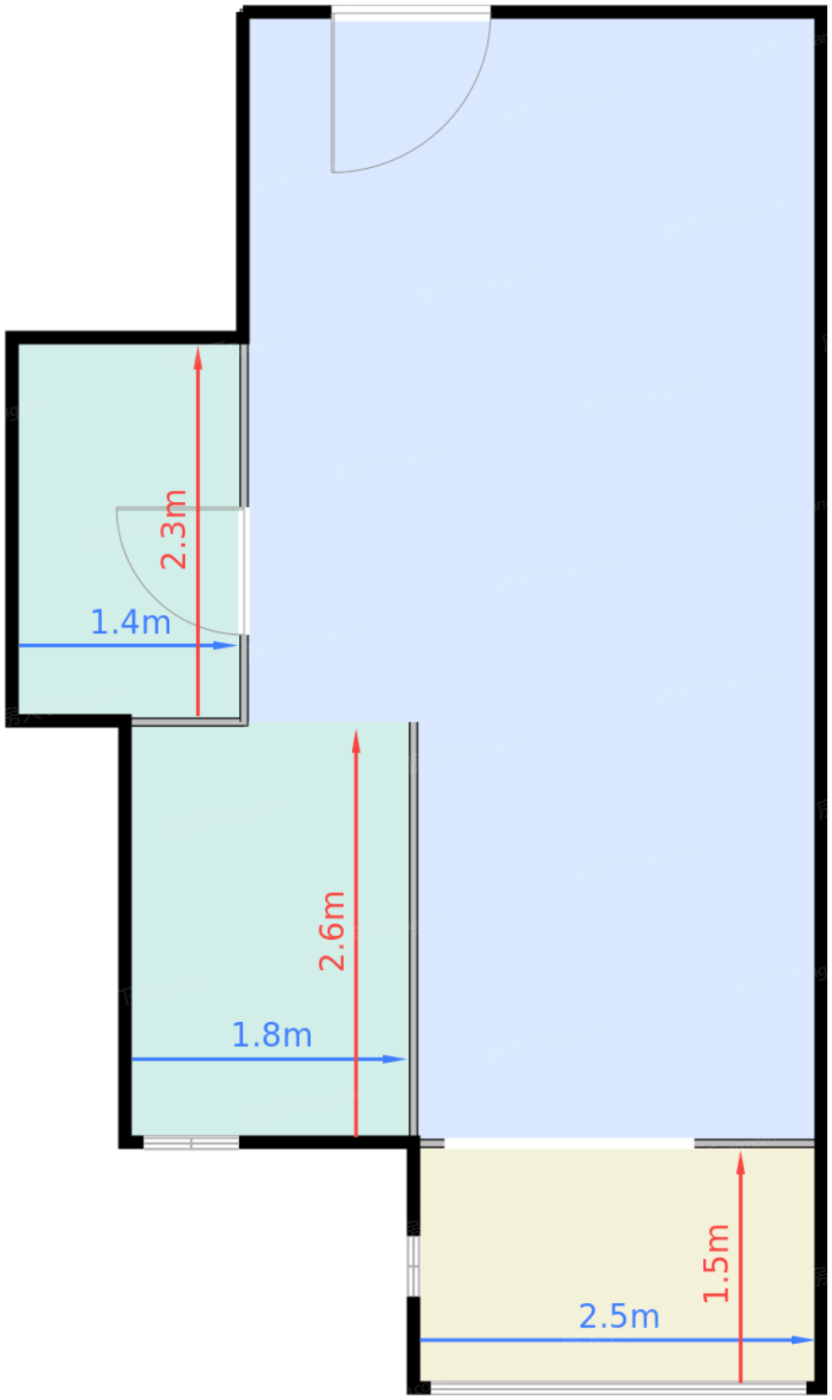 卫生间 3㎡ | 面宽1.4m | 进深2.3m
