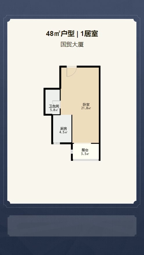 售完国贸大厦1居室户型图 | 建面:48.8㎡ | 朝向:南北通透