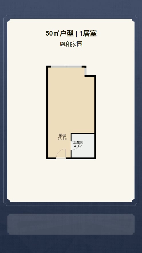 售完恩和家园1居室户型图 | 建面:50㎡ | 朝向:朝南