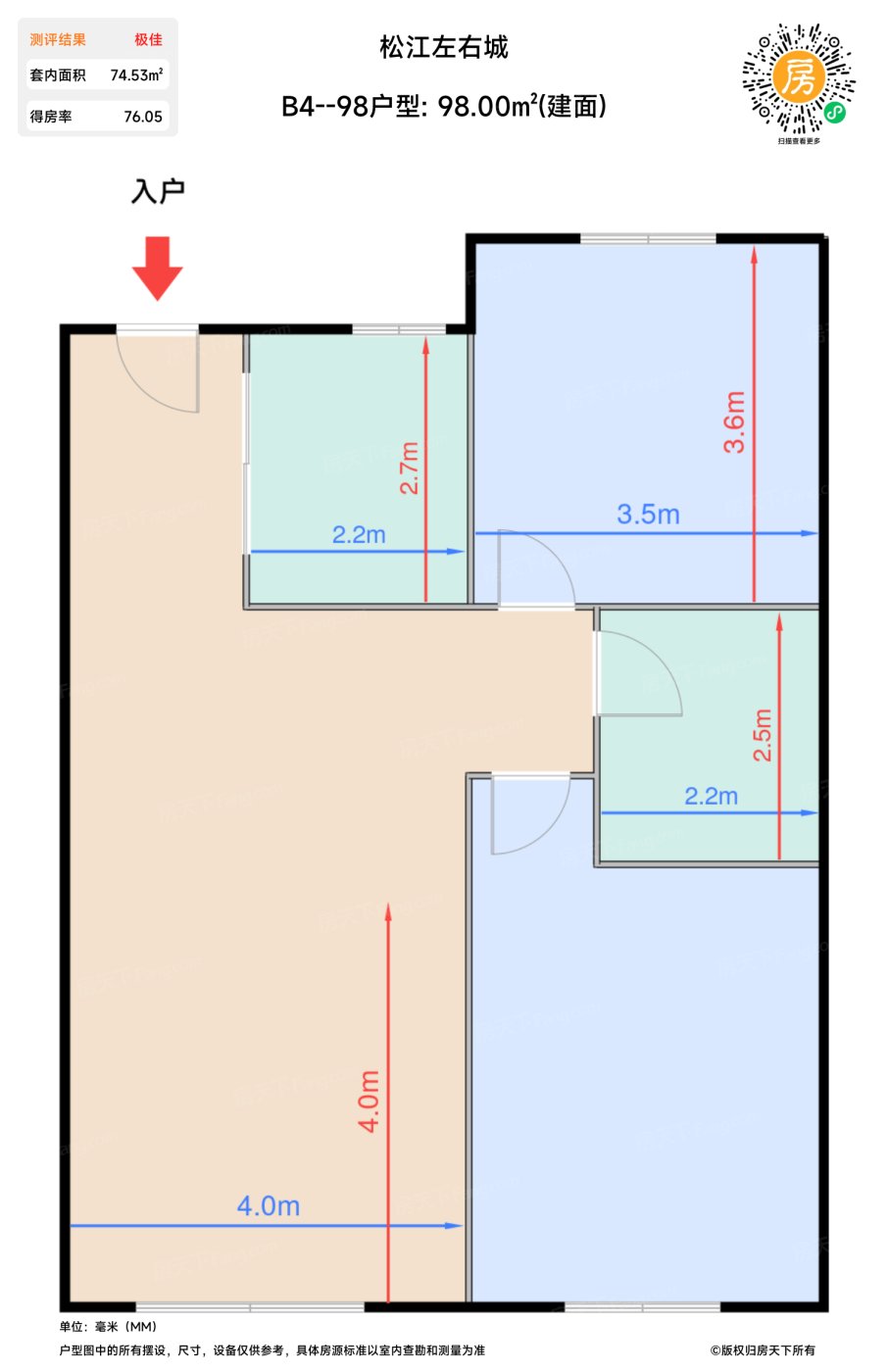 | 卧室B | 16.3 | 3.5 | 5.2 | 极佳 |