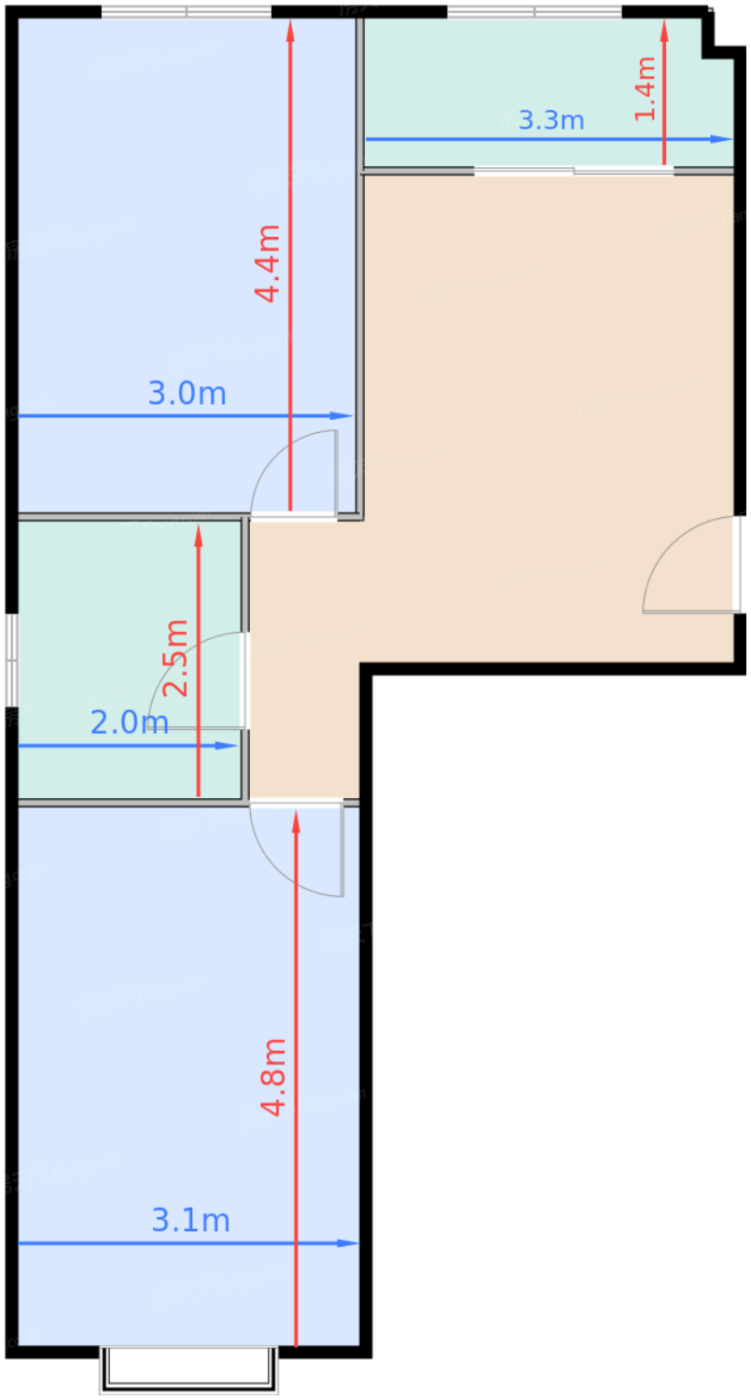 厨房 4.9㎡ | 面宽3.3m | 进深1.4m