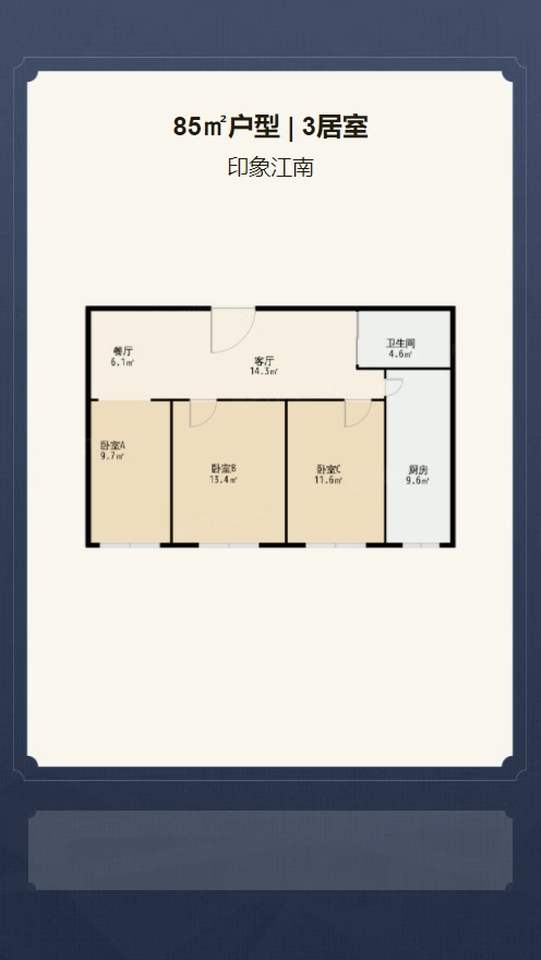 售完印象江南3居室户型图 | 建面:85㎡ | 朝向:南北通透