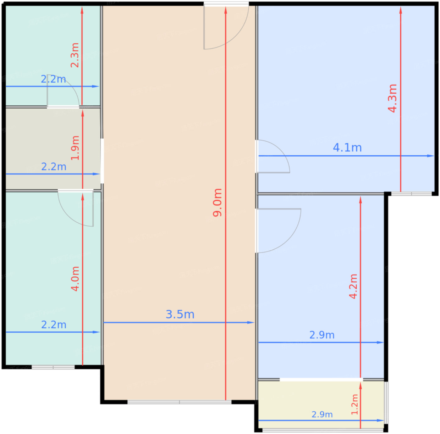 | 卧室B | 9.7 | 2.9 | 4.2 | 良好 |