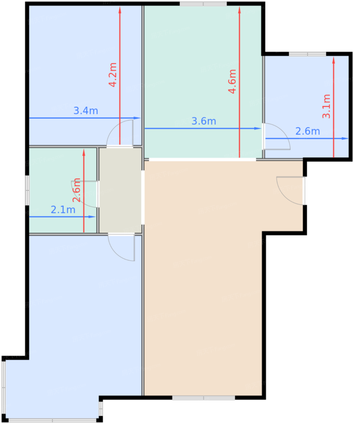 卧室A 7.3㎡ | 面宽2.6m | 进深3.1m