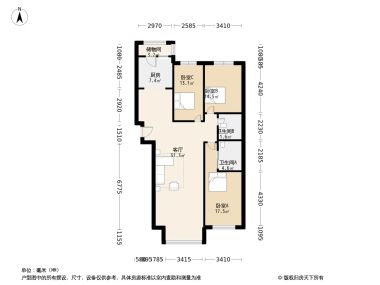 室内空间对应面积。