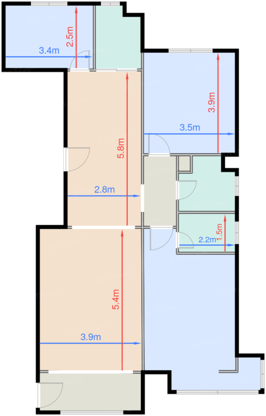 | 卧室B | 12.9 | 3.5 | 3.9 | 良好 |