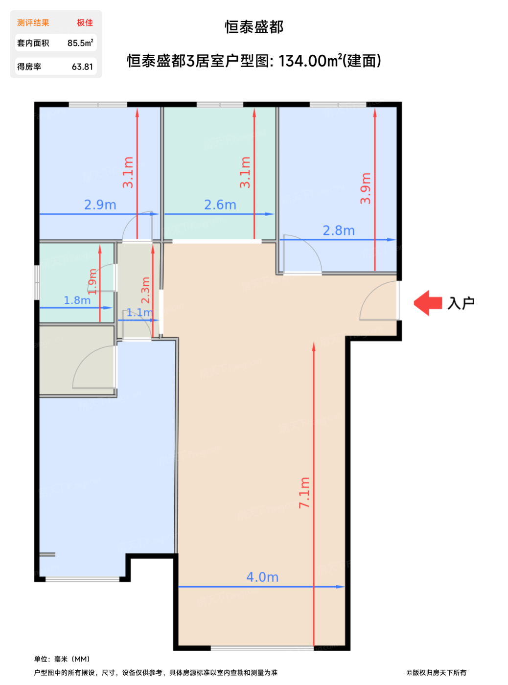 | 卧室B | 8.5 | 2.9 | 3.1 | 良好 |