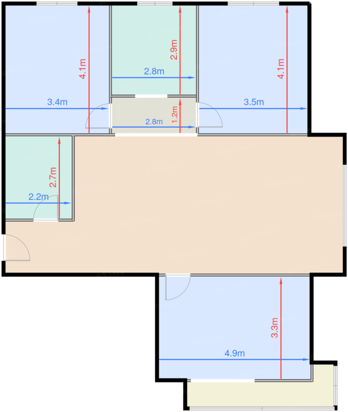 卧室C 14.3㎡ | 面宽4.9m | 进深3.3m