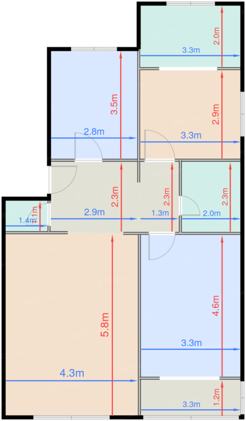 客厅 25㎡ | 面宽4.3m | 进深5.8m