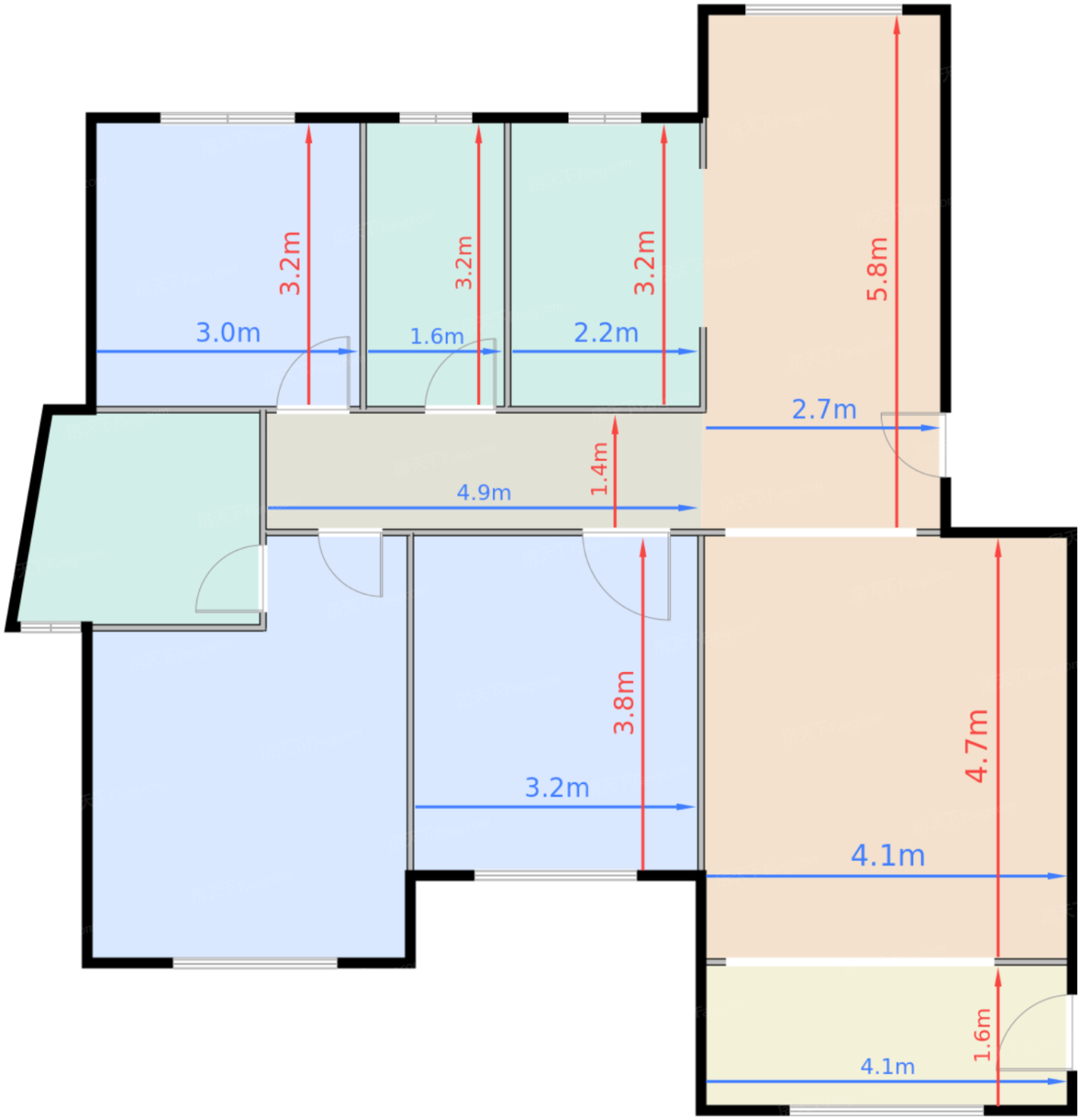 | 卧室A | 11.7 | 3.2 | 3.8 | 良好 |