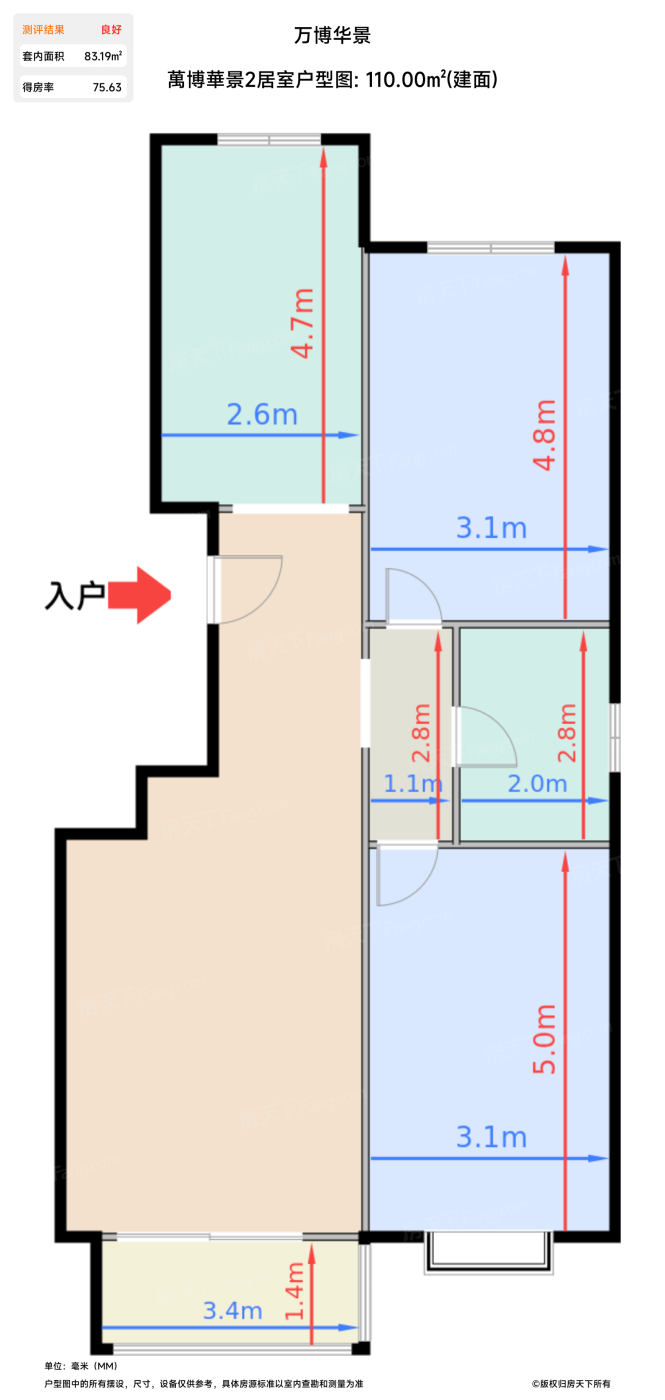 | 卫生间 | 4.9 | 2 | 2.8 | 良好 |